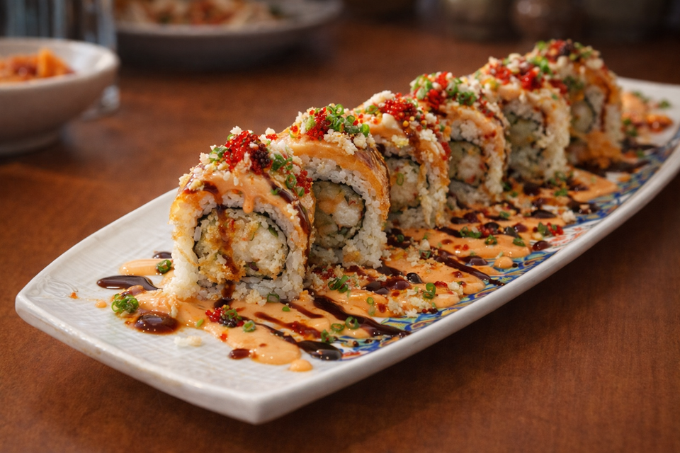 Our menu thoughtfully combines Japanese comfort classics and bold Asian flavors — from fresh sashimi and creative signature rolls to rich ramen and sizzling flaming hot plates. Each dish is crafted with quality ingredients, balanced flavors, and attention to detail. Whether you’re grabbing lunch between classes, enjoying dinner with friends, or sharing rolls at the table, our menu is designed for connection and discovery.